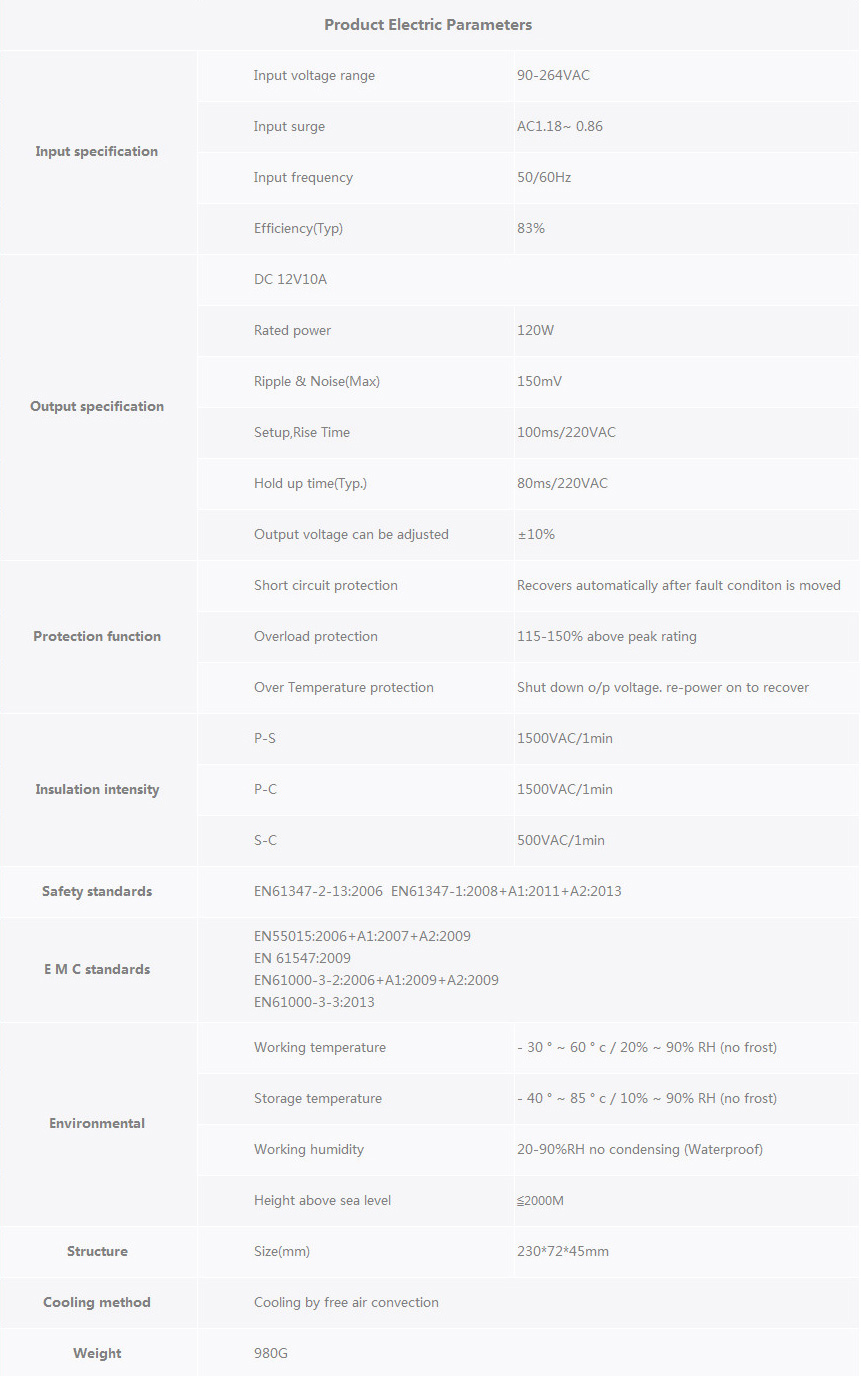 JAH-120CV-12 Mechanical Specification